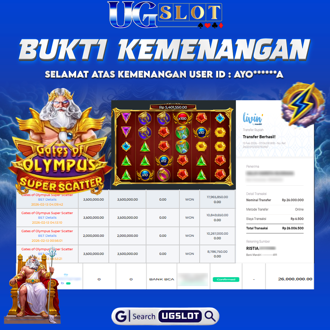 Bukti Kemenangan Player Murni Selama Bermain Di UGSLOT, WD Berapapun Pasti Dibayar!